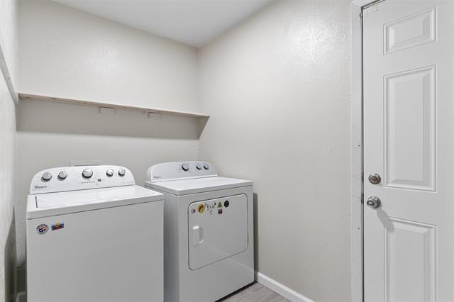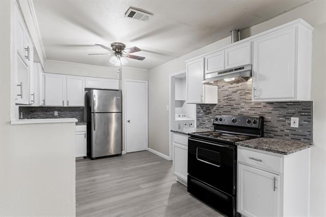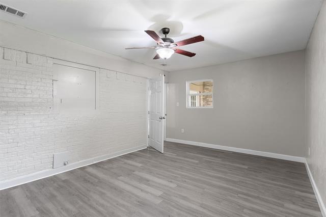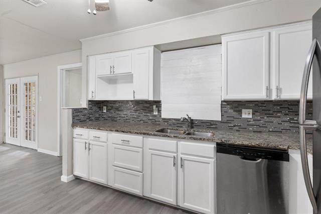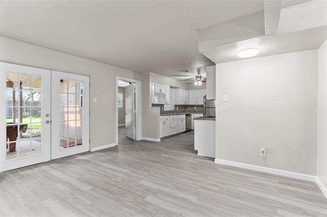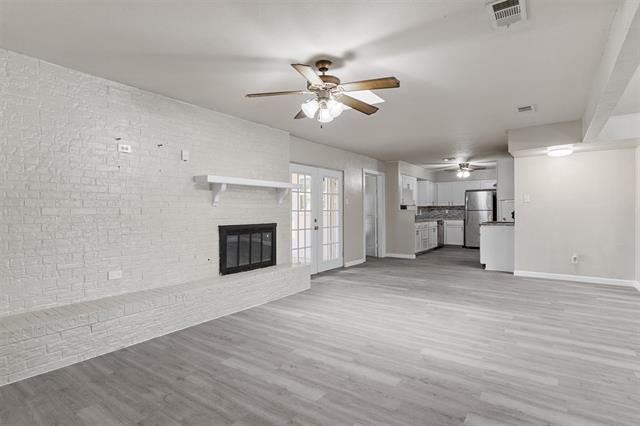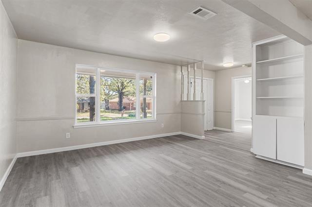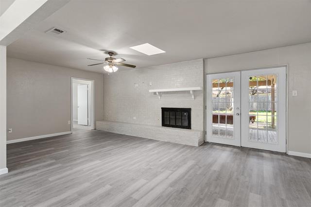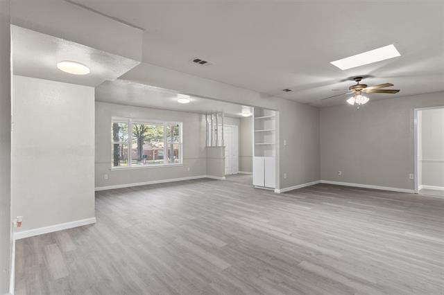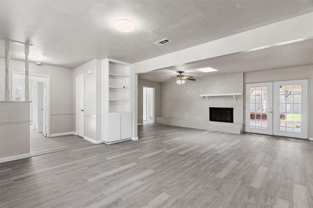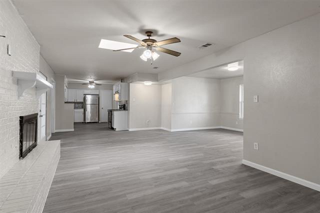 This beautifully reimagined single story home has been fully updated with luxury vinyl plank flooring and double pane windows throughout the home. Thoughtfully maintained and move in ready. NO CARPET! Step past the shady front porch and into a versatile open concept floor plan that flows easily throughout the home. An expansive living area at the front of the home features a wall of windows, a second living area, located just off the kitchen has a wood burning fireplace and a third bonus living room tucked at the back of the home would be perfect as a game room or a play room. The kitchen has been remastered with granite counters, electric oven, recently installed dishwasher, freshly painted built ins plus a spacious pantry. Refrigerator is INCLUDED. Freshly painted primary suite with attached bathroom featuring standing shower, linen cabinet and views of the large back yard. Two additional bedrooms share a jack and jill bath with tub and shower combination, generously sized closets and ceiling fans. Full size separate laundry room. Outside is truly amazing with a covered back patio (with skylight), storage closet, and pool table for game night. Foundation repaired November 2025.
