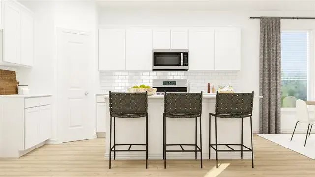 This single-story home has a convenient layout with all the essentials on one floor. Two bedrooms share a bathroom in the hall at the front of the home. The owner’s suite is across the hall with a private bathroom and walk-in closet. Down the hall is the open concept living room, kitchen and breakfast nook which offers access to the garage, as well as a covered patio.