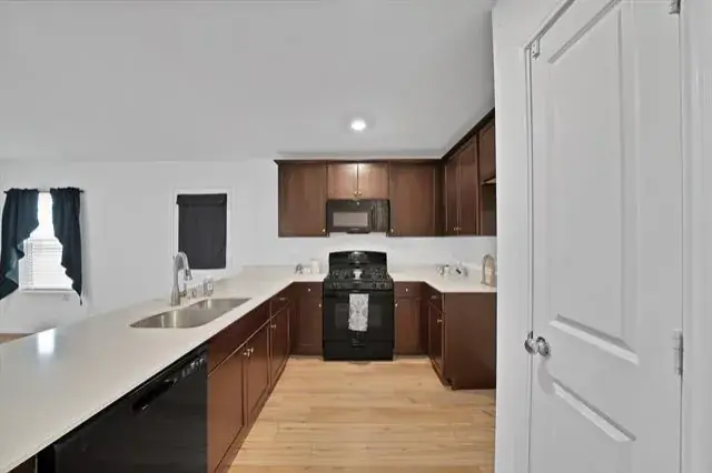 Step inside to an open-concept layout filled with natural light, featuring solid-surface flooring in the main living areas and carpeted bedrooms for added comfort. The spacious living area flows seamlessly into the kitchen, making it ideal for both everyday living and entertaining. The kitchen offers ample counter space, a large pantry, and sleek finishes, all overlooking the main living space so you’re never far from the action.