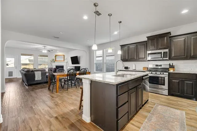 Inside, you''ll love the open-concept floorplan that''s perfect for modern living and entertaining. The kitchen features a large island with granite countertops, a gas cooktop, and an on-trend backsplash that was updated in 2023. Gorgeous wood-look tile flooring flows throughout the main living and dining areas, delivering both style and durability for everyday life.