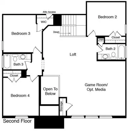The primary suite is located downstairs and includes a dual-sink vanity, garden tub, separate shower, and a spacious walk-in closet. Upstairs you’ll find three additional bedrooms, two full baths, and a generous game room.