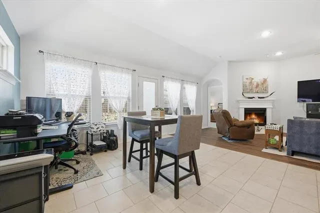 A versatile flex space provides endless possibilities, whether you need a home office, media room, or personal gym. The spacious primary suite serves as a private retreat, complete with dual vanities, a soaking garden tub, separate shower, and a generous walk-in closet. Two additional bedrooms, a full bath, and a powder room offer plenty of space for family or guests, while a cozy fireplace anchors the main living area with warmth and charm.