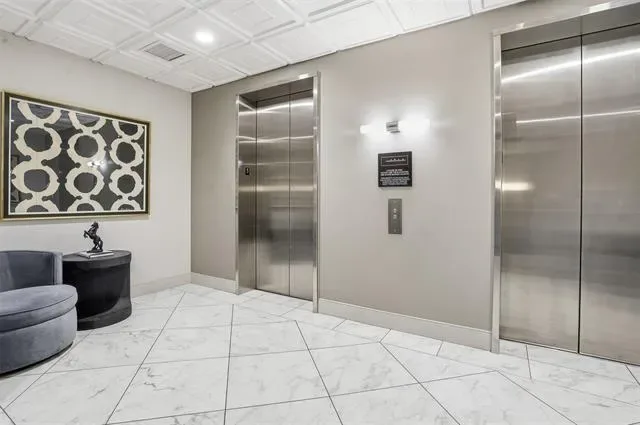 Expansive Windows and Views are great in this Beautiful 2 bedroom, 2.5 bath condo on the 5th floor of the East Tower at Montgomery Plaza. This spacious unit features an open layout, high ceilings, and approximately 65 ft of historic windows providing abundant natural light and views of the surrounding shopping, dining, and business district. The kitchen includes granite counters, stainless appliances, and an island open to the living area. Both bedrooms offer en-suite baths and generous closets, plus a guest half bath. A large office or expanded living area is precisely designed to open to the living areas. The living area features two original Art Deco style columns along the window wall. Located at the end of the hallway, the entrance is stunning! Large bathrooms each feature a separate shower, and large walk in closets. A large utility room is a plus with a sink and plenty of storage area! Two large deeded parking spaces included. Residents enjoy resort-style amenities: rooftop pool deck, fitness center, theatre room, 24 hr concierge, and secure fob access entry. Conveniently located in the heart of West 7th with excellent walkability to dining, shopping and entertainment! Quick access to the Trinity River Trails. Montgomery Plaza, built in 1928 in Mission Revival style with Art Deco details, is now a thriving community of luxury loft condos offering premier urban living in Fort Worth in the Cultural District. Walkability score is 77. Biking score is 79. Make this condo your City Home… you will LOVE it!