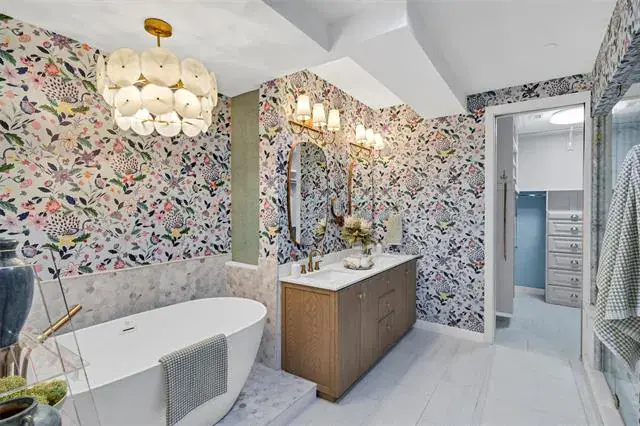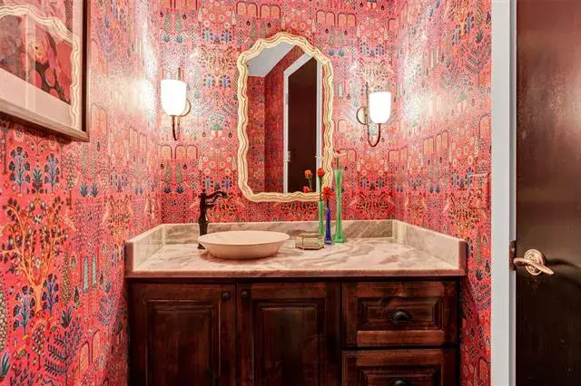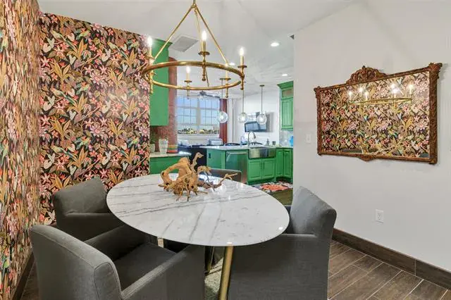 Forget everything you know about cookie-cutter condo living. This is a high-design retreat in the historic Montgomery Plaza, reimagined by Shauna Glenn for the buyer who wants a home with a pulse. The open-concept living area is a masterclass in urban hosting, anchored by a kitchen with custom cabinetry in a bold, electric green that will leave your guests feeling, you guessed it, green with envy. Between the whimsical floral wallpaper and the ceiling jewelry light fixtures throughout, every inch of this home is a conversation starter, including the views. Oversized windows frame incredible views of downtown Fort Worth, offering a front-row seat to the city’s best sunsets. The design narrative carries into the primary suite, where a moody teal ceiling transforms your bedroom into a private sanctuary. The ensuite is a total showstopper, fully remodeled with a freestanding soaking tub and floor-to-ceiling tile work that feels more like a boutique spa than a condo bathroom. Beyond the aesthetics, the layout offers the ultimate insider perk: you’re situated just steps from the elevators for effortless coming and going, and it''s complete with two of the best secured parking spaces in the building. With a 24-hour concierge and all that Fort Worth has to offer right outside your front door, this isn''t just a place to live' it’s a curated work of art.