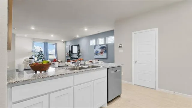 New, complete and available for a Quick Move-in!! Stunning new D.R. Horton home in the Orchard Village community located in Fort Worth and Everman ISD! Move-In Ready! The two-story Walnut Floorplan, Elevation A, offers 4 bedrooms, 2.5 bathrooms, and a 2-car garage with a spacious, family-friendly layout designed for modern living. The open-concept first floor features a large family room, dining area, and contemporary kitchen. The kitchen includes quartz countertops, 36” painted cabinets, stainless steel appliances, an electric range, stainless steel sink, center island, and a walk-in pantry. A convenient powder bath is located on the main level for guests. Upstairs, the private primary suite features an en-suite bath with dual quartz vanities, a walk-in shower, and a generous walk-in closet. Three additional bedrooms share a full bathroom with a quartz vanity top, while a versatile loft provides flexible space. Luxury vinyl plank flooring extends throughout the main living areas and wet zones. Built with energy-efficient construction and equipped with America’s Smart Home Technology. Exterior features include a landscape package, full sprinkler system with rain sensor, privacy fencing, and more. Conveniently located near Southern Oaks Golf Course, TCC South Campus, and major highways including I-20 and I-35, offering easy access to shopping, dining, and DFW International Airport.