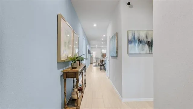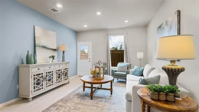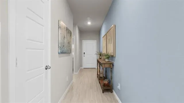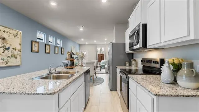 Beautiful new D.R. Horton home in the Orchard Village community located in Fort Worth and Everman ISD! The single-story Acorn Floorplan, Elevation B, with a quick estimated Winter completion, offers 3 bedrooms, 2 bathrooms, and a 2-car garage with a thoughtfully designed open-concept layout ideal for everyday living. The spacious family room flows seamlessly into the dining area and modern kitchen, creating a bright and functional central gathering space. The kitchen features quartz countertops, 36” painted cabinets, stainless steel appliances, an electric range, stainless steel sink, center island, and a walk-in pantry for added storage. The private primary suite includes an en-suite bath with dual quartz vanities, a 5-foot oversized shower, and a walk-in closet conveniently located off the bathroom. Two secondary bedrooms share a full bathroom with a quartz vanity top, offering flexible space for family, guests, or a home office. Luxury vinyl plank flooring extends throughout the main living areas and wet zones for durability and easy maintenance. Built with energy-efficient construction and equipped with America’s Smart Home Technology. Exterior features include a landscape package, full sprinkler system with rain sensor, privacy fencing, and more. Conveniently located near Southern Oaks Golf Course, TCC South Campus, and major highways including I-20 and I-35, offering easy access to shopping, dining, and DFW International Airport.