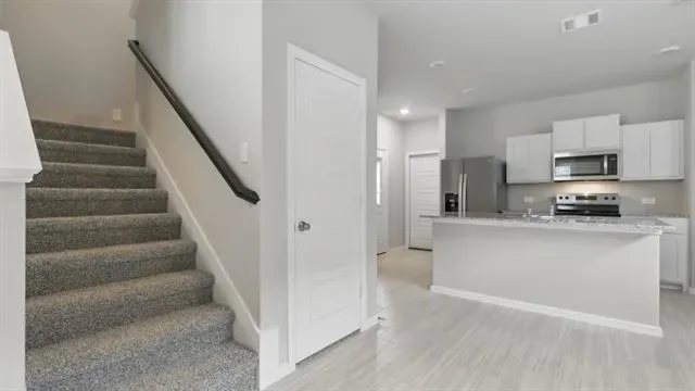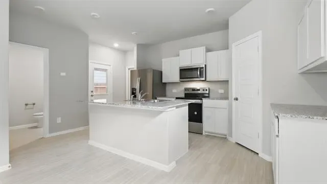 Stunning new D.R. Horton home in the Orchard Village community located in Fort Worth and Everman ISD! The two-story Almond Floorplan, Elevation B, with an estimated Spring completion, offers 3 bedrooms, 2.5 bathrooms, and a 2-car garage with a thoughtfully designed layout that maximizes space and functionality. The open-concept first floor features a spacious family room, dining area, and contemporary kitchen that flow together seamlessly, creating an inviting space for everyday living and entertaining. The kitchen is equipped with quartz countertops, 36” painted cabinets, stainless steel appliances, an electric range, stainless steel sink, center island, and a walk-in pantry for added storage. A convenient powder bath is located on the main level for guests. Upstairs, the private primary suite includes an en-suite bath with dual quartz vanities, a walk-in shower, and a generous walk-in closet. Two secondary bedrooms share a full bathroom with a quartz vanity top. Luxury vinyl plank flooring extends throughout the main living areas and wet zones for durability and easy maintenance. Built with energy-efficient construction and equipped with America’s Smart Home Technology. Exterior features include a landscape package, full sprinkler system with rain sensor, privacy fencing, and more. Conveniently located near Southern Oaks Golf Course, TCC South Campus, and major highways including I-20 and I-35, offering easy access to shopping, dining, and DFW International Airport.