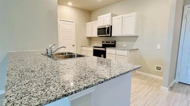 Available for a Quick Move-in!! Fabulous new D.R. Horton home in the new community of Orchard Village located in South Fort Worth and Everman ISD! Newly designed Homes to suit the needs of the most discerning Buyers. Spacious Two Story 4 Bedroom Walnut Floorplan-Elevation B. Complete and Move-In Ready! Modern open concept with Bright Dining area, spacious Living and large Chef’s Kitchen, Granite Countertops, Stainless Steel Appliances with electric Range and wide Pantry. Upstairs Loft, luxurious main Bedroom with a 5 ft oversized shower and walk-in Closet, secondary bedrooms and laundry. Extended tiled Entry, Hall and Wet areas plus Home is Connected Smart Home Technology. Cultured Marble vanities in full Baths. Covered front porch, Back Patio, 6 ft privacy fenced Backyard, Landscaping Pkg, Full Sprinkler System and more! A perfect blend of comfort and convenience – Tee off at nearby Southern Oaks Golf Course, pursue higher education at TCC South Campus, plus easy access to I-20, I-35, and DFW Int’l Airport.