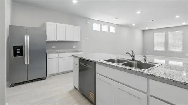Beautiful new D.R. Horton home in the Orchard Village community located in Fort Worth and Everman ISD! The two-story Nutmeg floorplan elevation A, with an estimated Summer completion, offers 3 bedrooms, 2.5 bathrooms, and a 2-car garage with a spacious and flexible layout designed for modern lifestyles. The open-concept first floor features a welcoming family room, dining area, and contemporary kitchen. The kitchen is equipped with quartz countertops, 36” painted cabinets, stainless steel appliances, an electric range, stainless steel sink, center island, and a walk-in pantry. A convenient powder bath is located on the main level for guests. Upstairs, the private primary suite includes an en-suite bath with dual quartz vanities, a walk-in shower, and a generous walk-in closet. Two secondary bedrooms share a full bathroom with a quartz vanity top, and a versatile loft provides additional living space. Luxury vinyl plank flooring extends throughout the main living areas and wet zones. Built with energy-efficient construction and equipped with America’s Smart Home Technology. Exterior features include a landscape package, full sprinkler system with rain sensor, privacy fencing, and more. Conveniently located near Southern Oaks Golf Course, TCC South Campus, and major highways including I-20 and I-35, offering easy access to shopping, dining, and DFW International Airport.