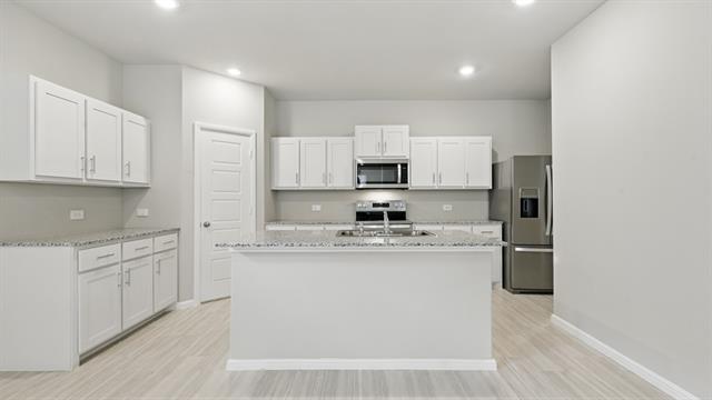 Gorgeous new D.R. Horton home in the Orchard Village community located in Fort Worth and Everman ISD! The two-story Hazelnut Floorplan, Elevation A, with an estimated Spring completion, offers 3 bedrooms, 2.5 bathrooms, and a 2-car garage with a spacious, open-concept design ideal for modern living. The first floor features a generous family room that flows into the dining area and contemporary kitchen. The kitchen is equipped with quartz countertops, 36” painted cabinets, stainless steel appliances, an electric range, stainless steel sink, center island, and a walk-in pantry. A convenient powder bath is located on the main level for guests. Upstairs, the private primary suite includes an en-suite bath with dual quartz vanities, a walk-in shower, and a spacious walk-in closet. Two secondary bedrooms share a full bathroom with a quartz vanity top. Luxury vinyl plank flooring extends throughout the main living areas and wet zones. Built with energy-efficient construction and equipped with America’s Smart Home Technology. Exterior features include a landscape package, full sprinkler system with rain sensor, privacy fencing, and more. Conveniently located near Southern Oaks Golf Course, TCC South Campus, and major highways including I-20 and I-35, offering easy access to shopping, dining, and DFW International Airport.