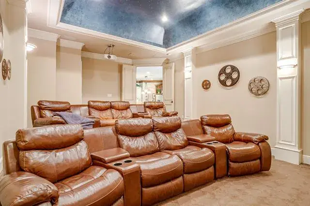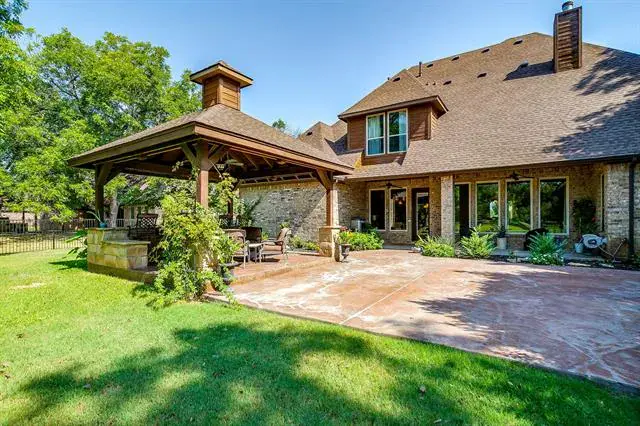Stunning Custom Home in Gated Eagle Mountain Lake Community! Nestled in the highly sought-after gated community of The Orchards at Eagle Mountain Lake, this beautifully crafted stone and brick home offers luxury living with exclusive lake access for Orchard residents only. From the charming curb appeal and manicured landscaping to the welcoming covered porch, every detail has been meticulously designed for comfort and style. Inside, you’ll find an open-concept layout with a gas range and large kitchen island—perfect for culinary enthusiasts. The cozy living room fireplace sets the tone for relaxing evenings, while multiple dining areas provide ample space for hosting. Retreat to the spacious primary suite, complete with a spa-like bathroom featuring a soaking tub, separate walk-in shower, and dual vanities. The expansive walk-in closet offers built-in drawers, shelving, and a center mirror island for exceptional organization. This home also features a private game room for endless fun and a theater room with tiered leather recliner seating, surround sound, and a stunning starry night ceiling—perfect for movie nights at home. This elegant yet functional home offers everything you need in a premier location. Don’t miss your opportunity to live in one of Eagle Mountain Lake’s most exclusive communities!