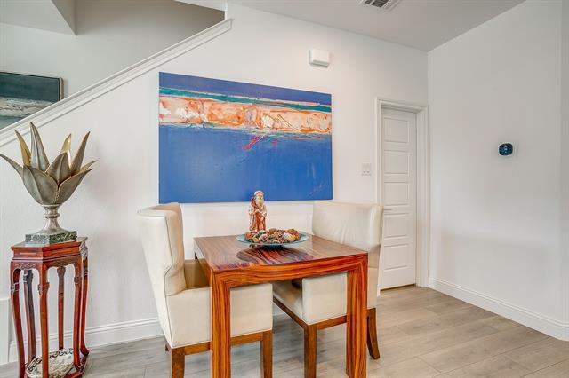 Experience refined, lock-and-leave living in this stunning, move-in-ready townhome located in the exclusive gated Overlook community of Northwest Fort Worth. Built in 2022 by Village Homes, this thoughtfully designed residence blends modern style with everyday functionality. The open-concept main living area is filled with natural light from oversized windows and soaring ceilings, creating an inviting space ideal for both entertaining and relaxing. The gourmet kitchen is a true centerpiece, featuring quartz countertops, a designer tiled backsplash, custom blue cabinetry, premium stainless steel appliances, a gas range, elegant vent hood, spacious walk-in pantry, and a convenient eat-in bar. A mudroom with additional storage connects the kitchen to the oversized two-car garage, offering practicality rarely found in townhome living. Upstairs, a versatile loft provides the perfect space for a home office, media room, or play area. The primary suite is a private retreat with a spa-inspired ensuite bath, oversized walk-in shower, and generous walk-in closet. Two additional bedrooms are well-appointed and share a spacious bath, while the upstairs utility room adds everyday convenience. Ideally located near Downtown Fort Worth with easy access on 199 or 820, Alliance, NAS JRB, Lockheed Martin, and outdoor recreation at Lake Worth and Eagle Mountain Lake, this exceptional home offers both luxury and location.