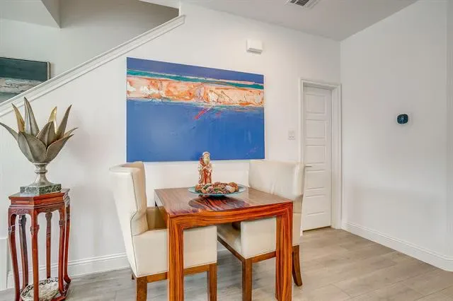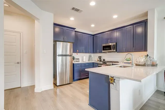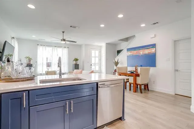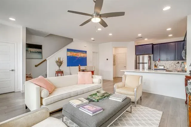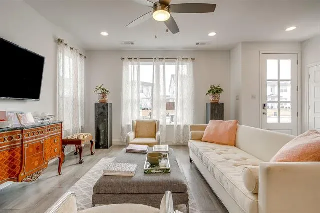 Experience refined, lock-and-leave living in this stunning, move-in-ready townhome located in the exclusive gated Overlook community of Northwest Fort Worth. Built in 2022 by Village Homes, this thoughtfully designed residence blends modern style with everyday functionality. The open-concept main living area is filled with natural light from oversized windows and soaring ceilings, creating an inviting space ideal for both entertaining and relaxing. The gourmet kitchen is a true centerpiece, featuring quartz countertops, a designer tiled backsplash, custom blue cabinetry, premium stainless steel appliances, a gas range, elegant vent hood, spacious walk-in pantry, and a convenient eat-in bar. A mudroom with additional storage connects the kitchen to the oversized two-car garage, offering practicality rarely found in townhome living. Upstairs, a versatile loft provides the perfect space for a home office, media room, or play area. The primary suite is a private retreat with a spa-inspired ensuite bath, oversized walk-in shower, and generous walk-in closet. Two additional bedrooms are well-appointed and share a spacious bath, while the upstairs utility room adds everyday convenience. Ideally located near Downtown Fort Worth with easy access on 199 or 820, Alliance, NAS JRB, Lockheed Martin, great restaurant and shopping options nearby, and outdoor recreation at Lake Worth and Eagle Mountain Lake, this exceptional home offers both luxury and location.