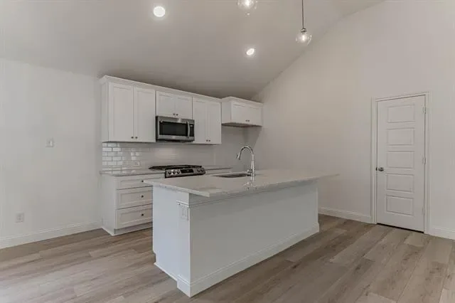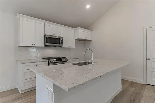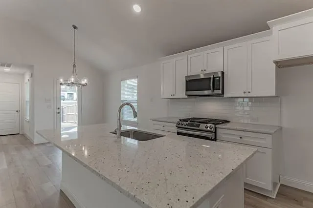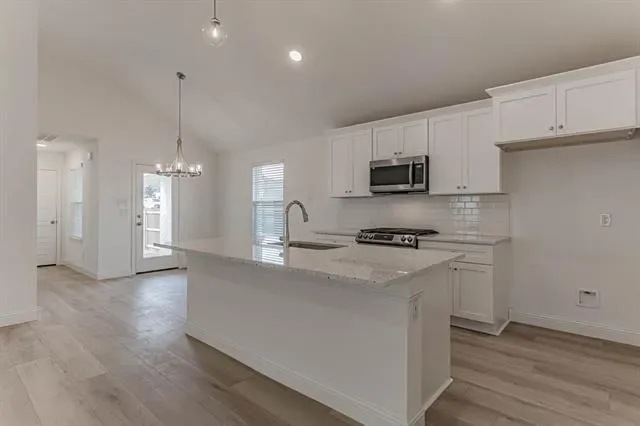 Ready to move in now! Great price in great quiet and gated neighborhood. Three bedroom cottage with low maintenance yard, but does have a yard for a small pet or play, fenced. Beautiful neighbor friendly front porch, spacious open floor plan; owner’s suite separate and private from other bedrooms and bath. Luxury vinyl plank flooring throughout common space; beauty and ease of care. Cabinetry with soft close drawers, painted, and quartz countertops in kitchen. Huge island, dining space adjacent and open to kitchen and living area with vaulted ceilings. Large owner’s suite for relaxing in quiet. Huge walk in closet, spa like shower and double vanity. Stainless steel appliances and energy efficient argon filled windows make for savings on utility bills. Fully landscaped with a sprinkle system included. Grass backyard for play and a covered rear patio for relaxation and entertainment! Oversize one car enclosed garage and two additional parking spaces, plus 9 x 5 storage are in garage.