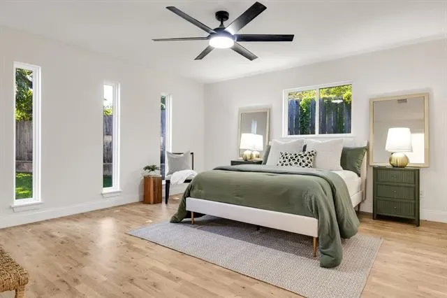 This fully renovated mid-century retreat on a .36-acre lot in Overton Park blends flexible living and indoor–outdoor comfort. Its single-story layout offers four bedrooms, one easily serving as a dedicated office or guest room for work-from-home or overnight guests. A private front entry and enclosed courtyard create a sense of arrival.