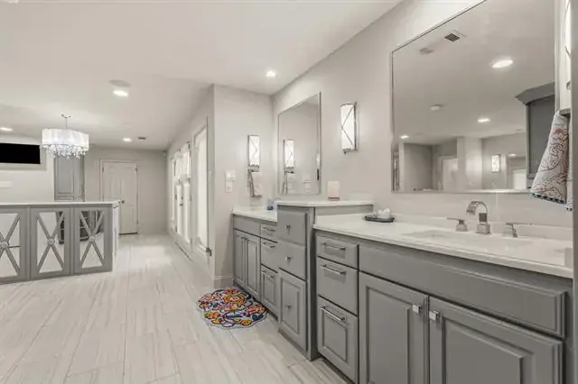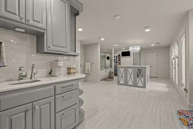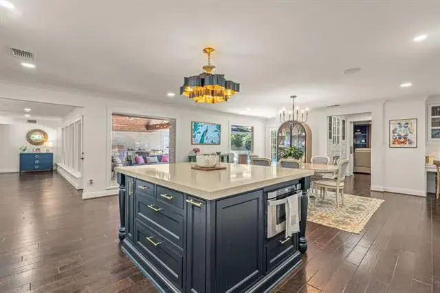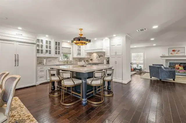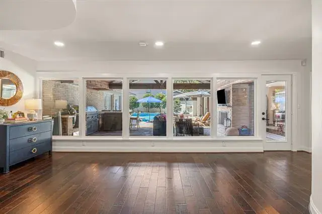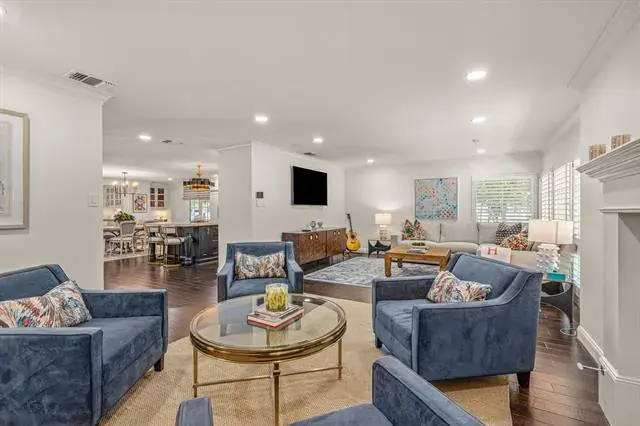 Surrounded by a park-like setting, directly across from the park and just blocks from TCU, this beautifully updated single-story home in Overton Park blends thoughtful design with everyday comfort and effortless entertaining. A short walk to Clearfork’s shops, dining, and trails, and minutes to Fort Worth’s top private schools, Overton Park Elementary, and city amenities, the location is as convenient as it is serene. A newly added stone front porch and walkway create a welcoming first impression. Inside, a bright foyer with floor-to-ceiling windows frames views of the backyard and pool. The spacious living area offers two distinct yet connected gathering spaces anchored by a cozy fireplace. The open layout flows seamlessly into the kitchen and dining area, creating a functional and inviting heart of the home. The kitchen features a large center island with seating and under-counter storage, cabinet-faced refrigerator and freezer, gas range with pot filler, and generous prep space. The dining area connects to a butler’s pantry and wet bar, leading to a separate family room with additional storage. The oversized primary suite includes a sitting area, built-in workspace, and direct access to the patio and pool. The expansive primary bath is a true retreat with soaking tub, steam shower, dry sauna, separate shower, coffee bar with mini fridge, large center island with storage and built-in pet kennel, laundry area, and direct access to the backyard and guest house. Three secondary bedrooms include two with ensuite baths. The backyard offers a large covered patio with fireplace, outdoor living area, and full cooking station with built-in grill, Green Egg, mini fridge, and bar seating. The pool features a tanning ledge and spa, while a gated grassy area and detached guest house provide privacy and flexibility for guests or play. A detailed list of updates and improvements available.
