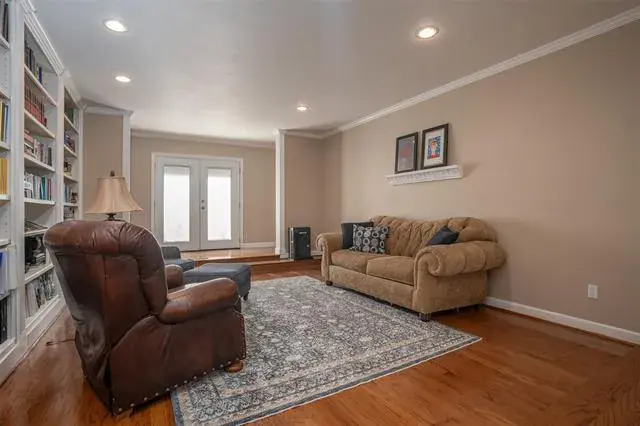elegant formal dining room, and a quiet den lined with custom bookshelves perfect for a home library