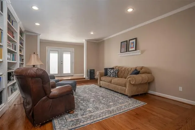 elegant formal dining room, and a quiet den lined with custom bookshelves perfect for a home library