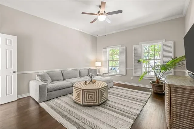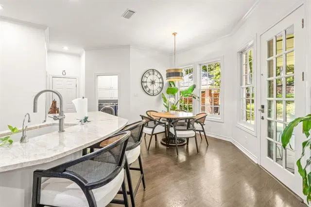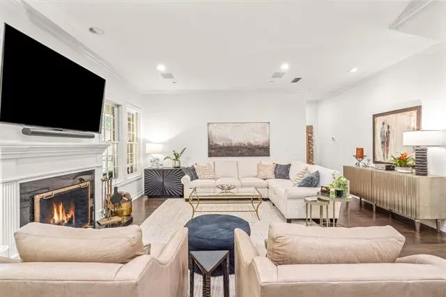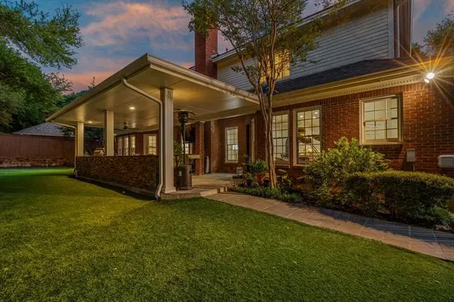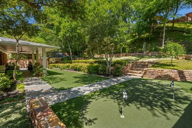 Nestled in the prestigious Overton Woods neighborhood, this stately Georgian-style residence offers timeless architecture paired with modern luxury. Updated in 2023–2024, the home is surrounded by lush landscaping, mature trees, and a circular drive that sets an impressive tone from the moment you arrive. A grand two-story foyer gracefully separates the formal living and dining areas. The family room opens to the kitchen and breakfast nook, creating a comfortable and seamless flow between the spaces, with a conveniently located half bath for guests. The kitchen features a breakfast bar, central island, walk-in pantry, and a coffee and wine bar complete with a sink and wine refrigerator. The spacious primary suite is located on the main level with views of the backyard and direct patio access. The light-filled en-suite bath boasts dual sinks, a separate soaking tub, walk-in shower, and dual closets. Upstairs, four bedrooms are thoughtfully arranged with two Jack-and-Jill bathrooms, while the third floor offers a versatile bonus room ideal as a game room, office, or additional living space. Step outside to a serene backyard retreat, where a covered outdoor living and grilling area—featuring two bar tops—overlooks a beautifully manicured yard with lush turf and a private putting green, ideal for both relaxation and entertaining. Additional highlights include a generous utility room, half bathroom, mosquito misting system, new class 4 impact resistant roof and gutters in 2023, a two-car garage, and a separate covered parking area accommodating two additional vehicles. Zoned to highly acclaimed Overton Park Elementary and minutes from premier shopping, dining, entertainment, and major thoroughfares, this exceptional home offers both elegance and everyday convenience.