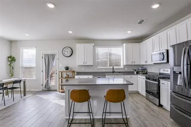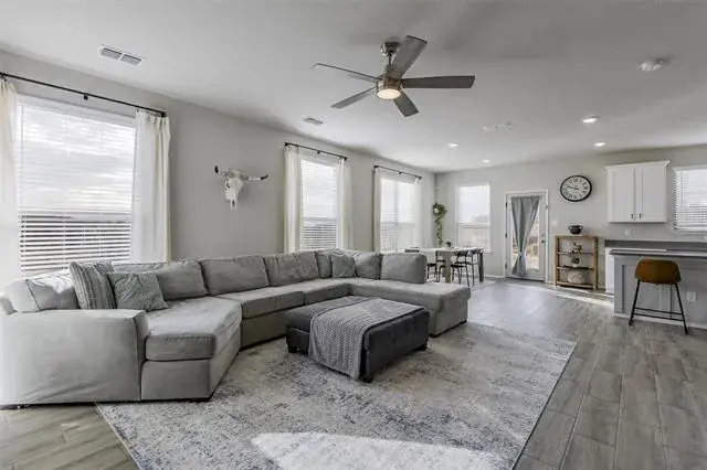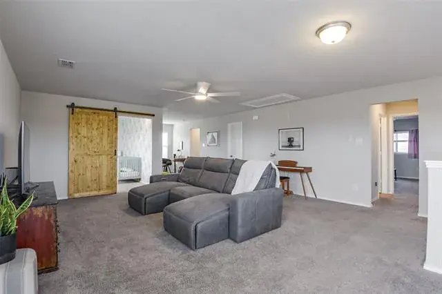 Step into a home where quality meets convenience. The heart of the home, the kitchen, features 42-inch upper cabinets and sleek Expo Gray Quartz countertops, complete with a full Whirlpool stainless steel appliance package. Efficiency is key with a Rheem tankless water heater and seamless connectivity throughout, thanks to an 8-port gigabit Luxul premium router. Downstairs living areas feature beautiful wood-look ceramic tile (master suite excluded), while upstairs offers exceptional space with a very large game room and huge secondary bedrooms, each boasting walk-in closets. This would be a great multi-generational home. Situated on a premier cul-de-sac lot, outdoor lovers will appreciate direct access to three miles of walking & jogging trails, a dog park, and a playground. Commuting is a breeze with Highway 30 just three minutes away, and endless shopping and eateries nearby.
