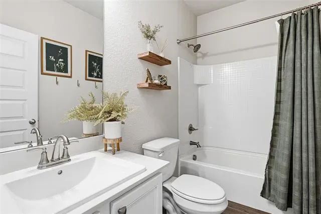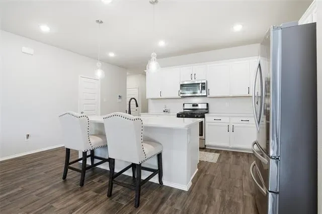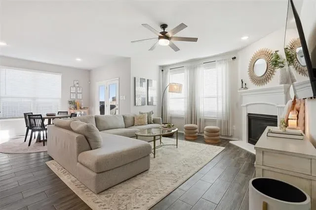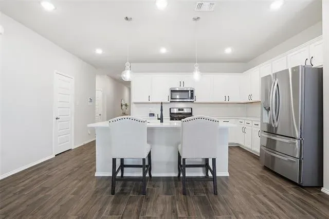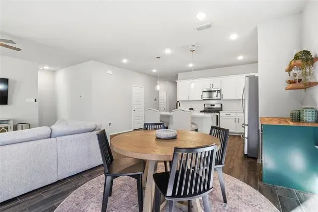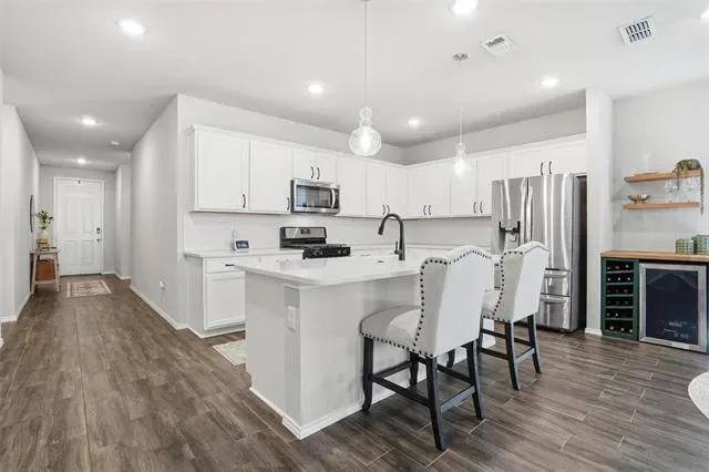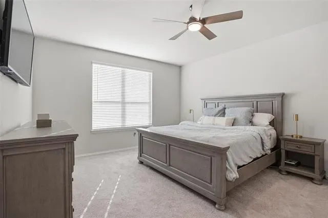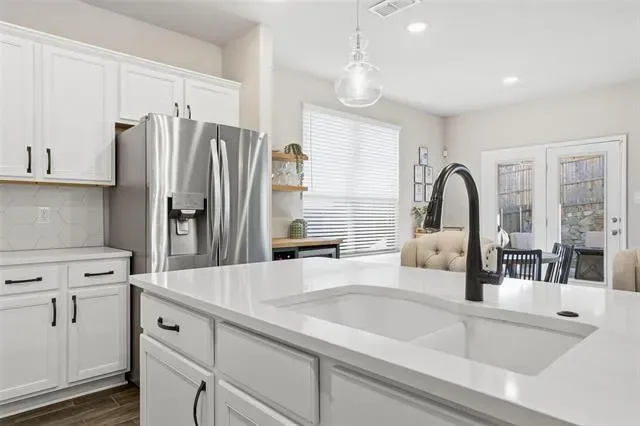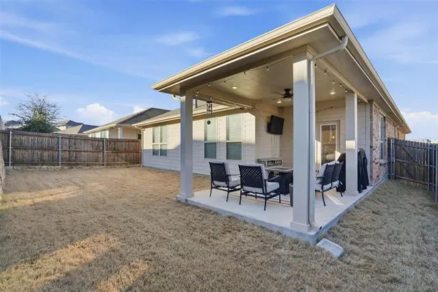 Impeccably maintained and better than new, this stunning home offers the perfect blend of modern design and everyday luxury. Boasting just over 1800 square feet, the open-concept layout is thoughtfully designed for both entertaining and comfortable living. At the heart of the home is a beautifully appointed chef’s kitchen, featuring an oversized island, abundant counter space, and a spacious walk-in pantry ideal for hosting gatherings or enjoying casual family meals. The seamless flow into the living and dining areas creates a bright, inviting atmosphere. This home offers 3 spacious bedrooms and 2 full bathrooms. Upgraded flooring enhances the main living areas, while plush carpeting provides comfort in each bedroom. The expansive primary suite is a true retreat, highlighted by an elegant bay window sitting area—perfect for a king-sized bed with is and her closets in the master bathroom with an oversized shower! Step outside to a generously sized backyard with a beautiful covered patio with views of the greenbelt. This backyard also offers endless possibilities, whether you envision a custom pool, outdoor living space, or room for pets and play. Perfectly situated in a desirable neighborhood with convenient access to I-30, providing a quick and easy commute to downtown Fort Worth, this exceptional home combines location, comfort, and elevated style.