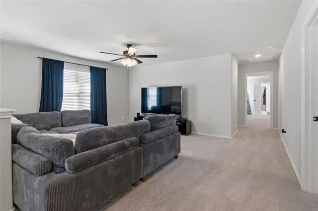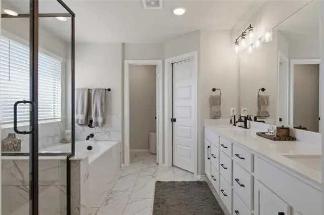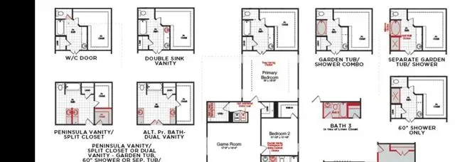 Upstairs, you’ll find an expansive game room, three generously sized secondary bedrooms, a full guest bath, a conveniently located laundry room, and abundant storage. The impressive primary suite offers a true retreat, featuring a separate garden tub and walk-in shower with half-wall and glass surround, a 90-inch dual-sink vanity with additional storage, and a spacious walk-in closet.