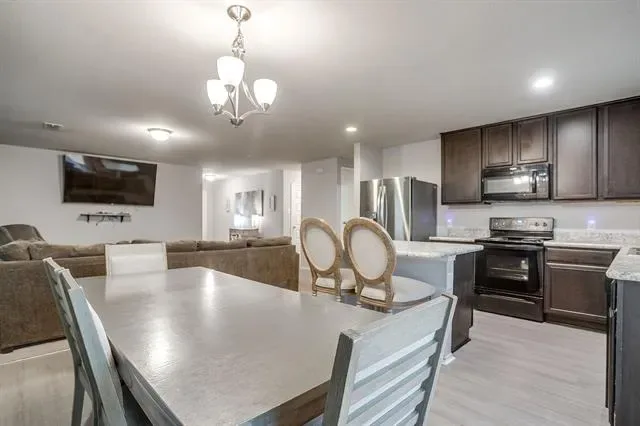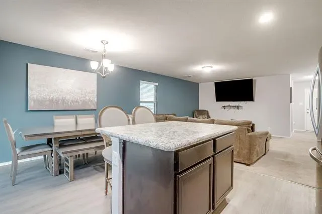 Charming and thoughtfully designed, this darling 3 bedroom, 2 bath home offers the perfect blend of comfort, style, and functionality with an open concept layout ideal for both everyday living and entertaining. The spacious kitchen serves as the heart of the home, featuring an oversized island with ample prep and seating space, all overlooking the dining area for easy connection and flow. Just beyond, a sliding glass back door invites in natural light and provides seamless access to the backyard, creating a bright and airy feel throughout the main living spaces. The split-bedroom floor plan offers added privacy, with a comfortable primary suite tucked away from the secondary bedrooms, making it a true retreat at the end of the day. The additional bedrooms are well-sized and versatile, perfect for guests, a home office, or growing households. Ideally located with convenient access to major highways, this home makes commuting around Fort Worth a breeze while still offering a cozy neighborhood feel. Whether you’re a first-time buyer, looking to downsize, or searching for a solid investment opportunity, this one checks all the boxes with its inviting layout and move-in ready appeal.