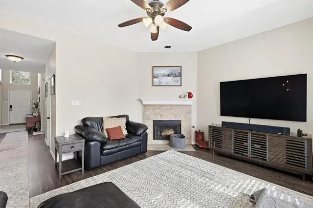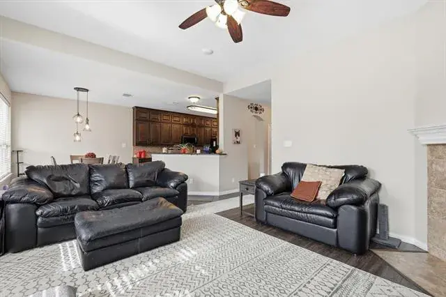 This well maintained and thoughtfully upgraded home offers a functional layout designed for both everyday living and entertaining. Two spacious living areas and two dining areas provide flexibility for gatherings of all sizes, while the gas log fireplace adds warmth and character to the main living space. The kitchen is equipped with a gas cooktop and double ovens, ideal for the home chef, and flows seamlessly into the primary living area. The private primary suite is located downstairs and features a walk in closet and comfortable separation from the secondary bedrooms.