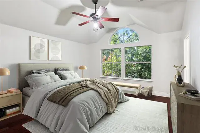 LOOKING FOR A GREAT HOME! This 4 bedroom, 2.5 bath sits on a desirable corner lot in the outstanding Keller ISD. The home has just been freshly painted and features new sod and landscaping all around, giving it fantastic curb appeal! Enjoy the open concept layout with beautiful bamboo flooring throughout, an oversized game room upstairs, and a loft area that’s perfect for a computer or homework space. One bedroom is located separately downstairs-ideal for a teenager or mother-in-law suite. Garage doors were replaced in 06-22, and solar screens have been added for improved energy efficiency. A new roof and new AC unit were also recently installed. The shady backyard with mature trees is great for relaxing ot entertaining. Conveniently located near trails, playgrounds, creeks, basketball courts, shopping, restaurants, and parks. This home has it all!