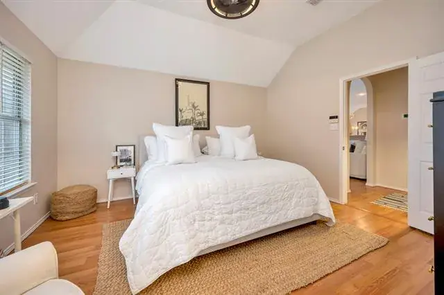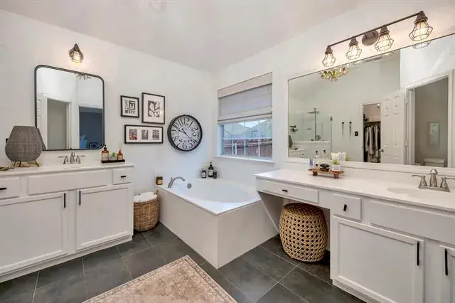 This meticulously maintained single story home offers stunning curb appeal and a welcoming presence from the moment you arrive. Inside, you will find an open floor plan with laminate and tile flooring throughout, creating a clean and modern feel with no carpet. Located within walking distance to community parks and trails, it provides easy access to outdoor recreation and green space. The kitchen is well appointed with a breakfast bar, pantry, granite countertops, and stainless steel appliances, making it ideal for everyday living and entertaining. The backyard serves as a beautiful retreat, featuring a flagstone patio, pergola and garden area perfect for relaxing or hosting gatherings. The spacious primary suite includes dual separate vanities, a garden tub, a separate shower with a rainfall showerhead, and a large walk in closet. Conveniently situated near shopping, restaurants, a movie theater, Costco, HEB, and more, this home combines comfort, style, and an unbeatable location.