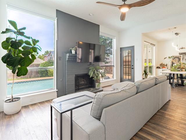 Welcome to the Park Glen neighborhood & sought after Keller ISD where its surrounded by mature trees, many beautiful city parks, scenic walking trails, peaceful creeks, & sports courts. Residents enjoy neighborhood events throughout the year like Turkey Trots, Fourth of July bicycle parades, & seasonal celebrations that make Park Glen a truly special place to call home. Inside, the home has a modernized design – kitchen with black solid surface counters, a custom made backsplash, new dishwasher & matching appliances- refrigerator will convey with a quality offer. Beautiful new windows showcase views of the backyard pool & a stunning mature magnolia tree that adds privacy. Modern updates continue with wood look LVP flooring downstairs, updated remote ceiling fans, & contemporary lighting. All bathrooms have been thoughtfully updated with glass shower partitions, floating vanities, new commodes, & updated vanity lighting for a clean modern feel. The spacious primary bedroom offers high ceilings & charming built in bookshelves. The primary bath features dual floating vanities, a garden tub, seperate shower, floating shelves, modern custom wood wall detailing, & a big walk in closet. All secondary bedrooms are located upstairs, while one downstairs bedroom with a full bath provides excellent flexibility for a home office, guest suite, multigenerational living, or roommate space. This home reflects true pride of ownership with tasteful modern updates including plantation shutters. Roof is only a few years old, HVAC has been regularly maintained, new pool pump & filter recently installed so the new owners can enjoy their pool without worries of maintenance for many years to come. Owners installed a new security system with cameras on window & doors with sensors for added peace of mind. Washer, dryer, refrigerator, & outdoor seating can convey with a quality offer. Come see the home & pool you have been searching for & experience everything this Park Glen gem has to offer.