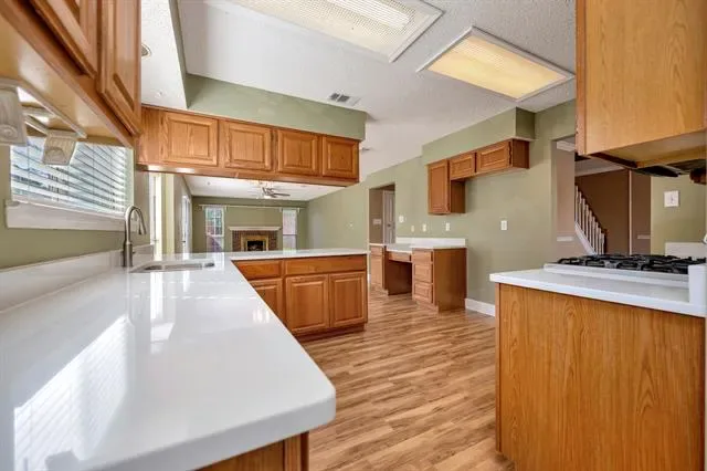 Step into your dream home! Immerse yourself in the allure of an in-ground pool, embraced by effortlessly maintained landscaping. Unwind in the newly remodeled primary suite, boasting his and her walk-in closets, a separate shower, and an extended vanity. The living room exudes warmth with new wood floors and a charming brick fireplace, seamlessly flowing into a gourmet kitchen adorned with new granite countertops, a gas stove, built-in desk, and stainless appliances. Efficiency meets elegance with an office area featuring French doors, perfect for work or study. TWO AC units have been completely redone including the ductwork. Nestled in a prime location, this haven is a stone’s throw from Watauga, Alliance, and Presidio shopping. Walk your children to the nearby sought after elementary school or enjoy leisurely afternoons in the park playground or trails with Arcadia Park. Commuter roads are easily accessible, ensuring convenience for your daily travels. Make this sought-after Keller ISD gem your forever home and schedule a showing today!
