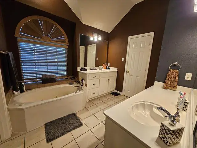 Gorgeous home in Park Glen neighborhood! The ultimate floor plan featuring 4 bedrooms, 2 bathrooms, 2 living and 2 dining areas. This home offers the best of an open concept plan with two large areas perfect for hosting gatherings. Spacious kitchen with an abundance of cabinetry, island, and separate breakfast bar. You won’t find any carpet in this home, luxurious hardwoods throughout most of the home with accent tile to complete the remaining spaces. Vaulted ceilings adding height and character to the generously sized rooms. Beautiful plantation shutters in the dining and living rooms paired with two inch blinds throughout the rest of the home. The oversized primary bedroom features a private patio entrance as well as a large dual vanity bathroom with jetted tub, separate shower and spacious walk in closet. This is a split living floor plan with the additional bedrooms and bathroom accessible through their own hallway. If you’re in need of additional storage or a workshop area don’t forget to check out this massive 28ft long garage with plenty of space to fit your needs. Recent upgrades include a TANKLESS water heater, entirely new HVAC system, and various smart home features. (doorbell, thermostat, front door lock) Keller ISD!