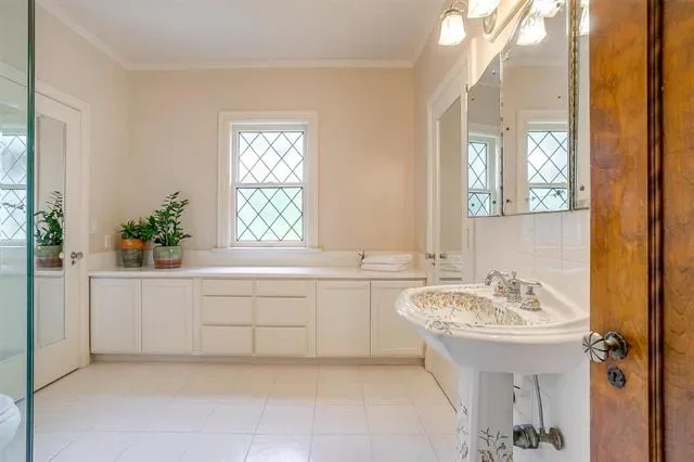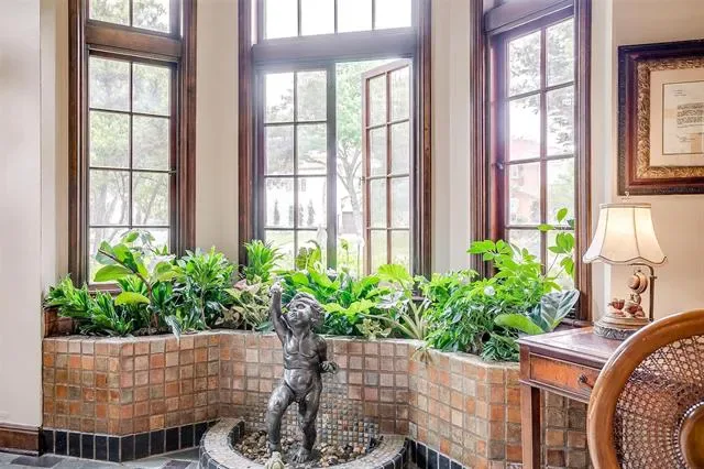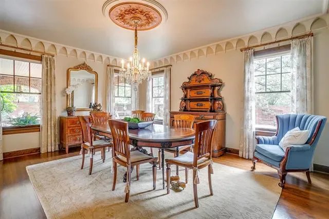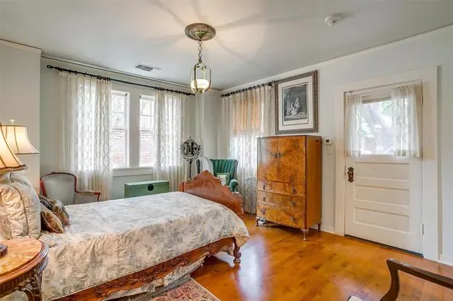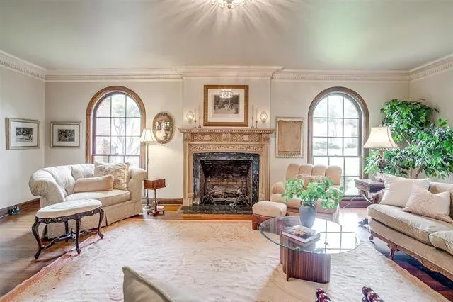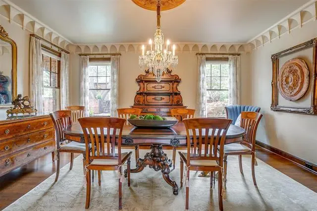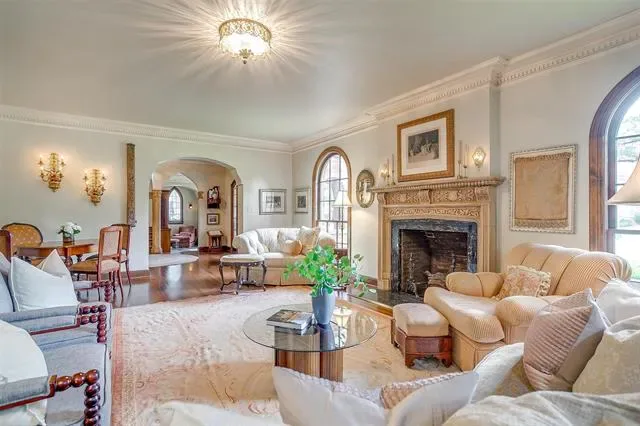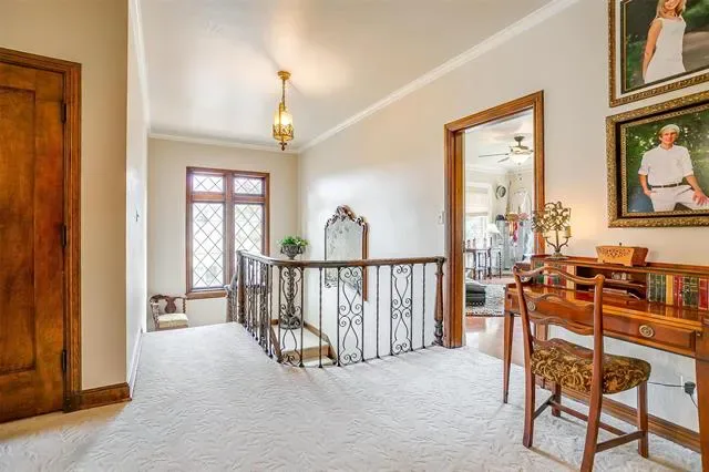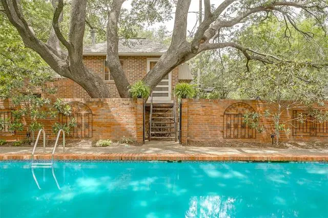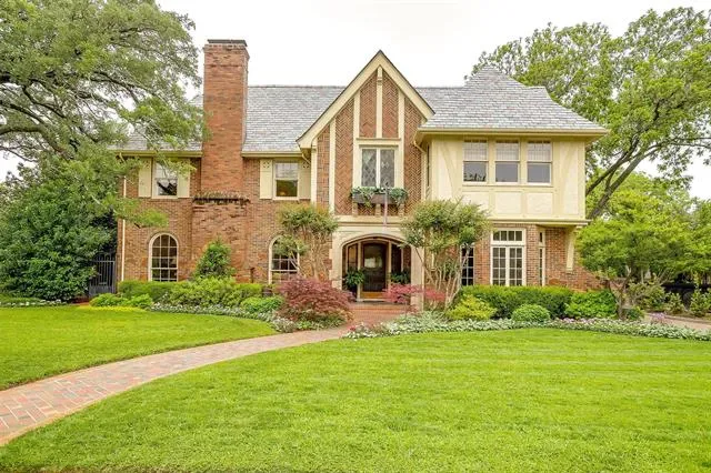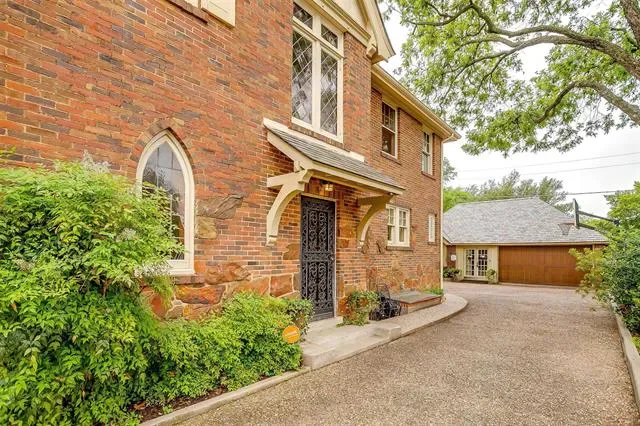 Welcome to 2424 Medford Court West – A rare find in Park Hill. This stunning Early English style estate has been carefully restored in character and original style over the past three decades – with all the updates for modern living. Main house is 5,247 sq ft with 4 bedrooms and 2.1 bathrooms. Features include Tudor arched entry, original call bells and light fixtures, gothic plaster cornice moldings, picturesque windows with Belgian glass, matching interior slate floors with roof (lifetime slate roof replaced 2018), hardwood floors, built-ins, ironwork, elevator, and period detailing throughout. Upstairs, you’ll find four spacious bedrooms and two bathrooms. Each bedroom shares an ensuite bath. Primary suite includes a fireplace, adjoining office or hobby space (original sleeping porch). Primary ensuite bath is a true retreat, featuring a separate tub and shower with a window that opens for beautiful view and breeze – perfect for unwinding after a long day! Basement must be seen to believe. Parquet wood floors, wood burning fireplace, full billiards room with original details, and hidden bar! Guest cottage is 475 sq ft, 1 bedroom, 1 bathroom. Studio is 192 sq ft. Gorgeous lush landscaping and tree coverage continue the English Style estate to the outdoors. Covered patio, gardens, and brick walls allow for many spaces for entertaining and privacy. Pool features coping of bricks from the historic Fort Worth Stockyards. Architect: Joseph Pelich, Features: Texas Home and Living Magazine
