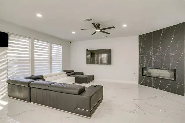 YOU WILL BE IMPRESSED FRONT DECORATIVE TALL METAL DOUBLE DOOR ENTRANCE 7X41 LIVING ROOM OPEN AREA TO DINNING AREA SERVING AREA WITH A WALK IN PANTRY, BUILT IN SHELVES AND DRAWERS KITCHEN: 2 BUILT IN STOVES ONE GAS WITH GLASS VENTHOOD BUILT IN MICROWAVE AND CONVENTIONAL OVEN ISLAND WITH BUILT IN ELECTRIC STOVE WITH VENTHOOD ,VERY STRONG EXTRACTOR, GRANITE TOP AND SEATS ABOUT 6 PEOPLE BREAKFAST AREA OPEN TO FAMILY ROOM TV SCREEN FOR SURVELLIANCE CAMERAS. ELECTRIC FIREPLACE BEDRROOM WITH BUILT IN DRAWERS BACK PORCH18X14, ROOM FOR OFFICE OR GYM WITH GLASS FRENCH DOORSUTILITY ROOM WHASER AND DRYER ROOM, BUILT IN CABINETS GARAGE JUST RENOVATED FLOOR WITH PARTIAL SEE TROUGH DOOR WITH CONTROLSTAIRS WITH GLASS SIDE PROTECTIVE LIVING ROOM MASTER BDR WITH FIRE PLACE MASTER BATH LARGE MIRRORS BUILT IN VANITIES A ROUND 5′ TUB AND A SHOWER WITH GLASS DOOR’ WALK IN CLOSSET 6X14 BUILT IN DRAWERS, ENCLOSED TOILET MEDIA ROOM 3 BEDRROMS WITH BUILT IN DRAWERS CEILING FANS WITH CONTROL, 2 FULL BATHROOMS WITH GLASS DOOR SHOWERS, HALLWAY LINENS CLOSET AND A DROP IN DIRTY CLOTHES SHOOT TO THE LAUNDRYROOM, HARWOOD FLOORS IN SECOND FLOOR DECORATIVE LIGTHS INSIDE AND OUTSIDE ENEERGY SAVER THERMOSTAT AND MUCH MORE A MUST SEE