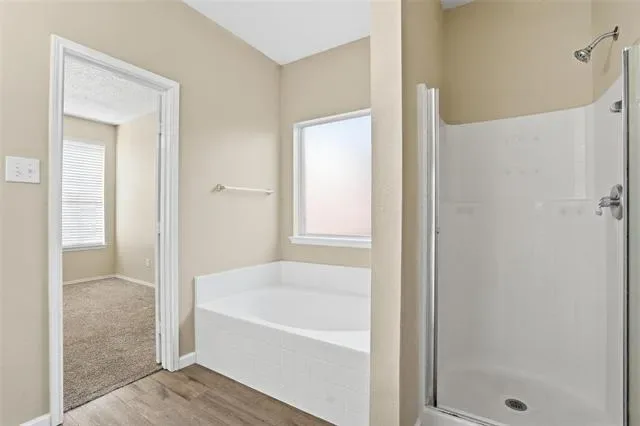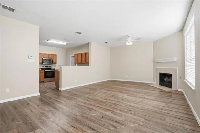From the moment you enter this updated home you will feel the inviting atmosphere with so much natural lighting and neutral paint throughout that is perfect for relaxing and or entertaining friends and family. Beautiful luxury vinyl planks throughout the downstairs except for in the primary bedroom. Upon entry you have a formal dinning room and or a flex space. The kitchen boasts granite countertops, stainless steel appliances, lots of cabinets, large walk in pantry, and is open to the living room and second eating area. The living room does have a wood burning fireplace with gas starter and decorative mantle. The spacious primary bedroom is downstairs and separated from the other three bedrooms upstairs. It has it’s own ensuite with dual sinks, separate shower, soaking tub, and generous sized walk in closets. Downstairs you also have the convenience of a half bath. Up the stairs is a second living area great for kids to gather and play along with three additional bedrooms and a full bathroom. The carpet is only around two years old. Enjoy the large backyard with no neighbors behind you. The community has a pool, clubhouse, walking trail, and more.