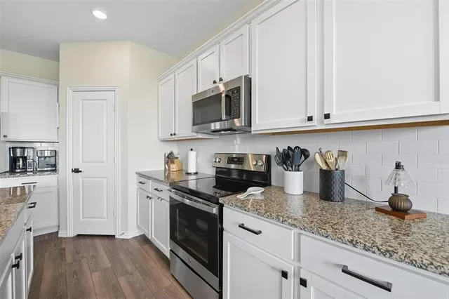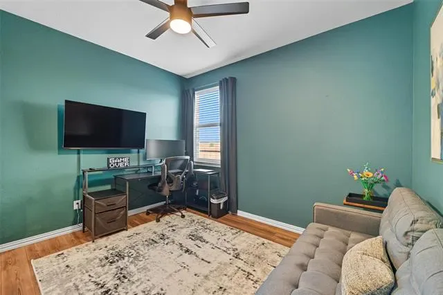 VA Assumable Loan at 3% AND paid off solar panels! Your future home blends modern design, thoughtful upgrades, and a prime location at the end of a quiet cul-de-sac. The home’s exterior welcomes you with upgraded flower beds and a modern walkway leading to the front door. Inside, the home is bright with an inviting open layout, upgraded fixtures throughout, and trendy accent walls that add the perfect touch of warmth. The living area flows seamlessly into the kitchen, featuring a generous island, sleek cabinetry, and stainless appliances — perfect for entertaining or everyday meals. The primary suite serves as a private retreat separate from other bedrooms with an updated primary bathroom which really make this home stand out above the rest. Down the hall you will find 3 separate additional bedrooms which offer flexibility for family, guests, a home gym, or a home office. The backyard is perfect size with plenty of room to entertain, or simply enjoy the outdoors, and not have too much yard to take care of. The side gate was thoughtfully added to hide AC unit or could be used as a dog run. You will never have neighbors behind you or to your right as there is dedicated greenspace. The location is unbeatable, just minutes from Eagle Mountain Lake, Alliance Town Center, and Presidio Village, with quick access to I-35W and Loop 820 for commuting. This home combines modern style, eco-conscious updates, thoughtful interior design, and a private, family-friendly setting — a rare Fort Worth gem ready to welcome its next owners.