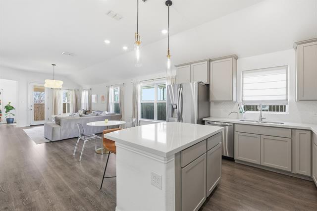 This well-maintained, single-owner home built in 2021 offers comfortable, modern living in Keller ISD—now available at $415,000. The inviting brick and stone exterior sets the tone for a thoughtfully designed interior featuring engineered hardwood floors throughout and a light-filled, open-concept layout.