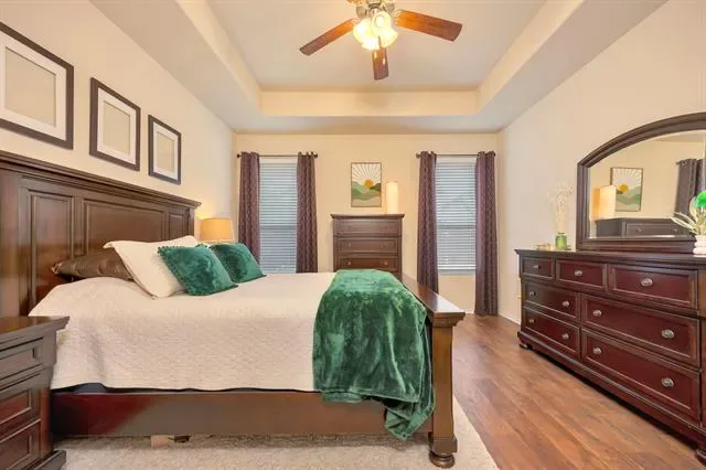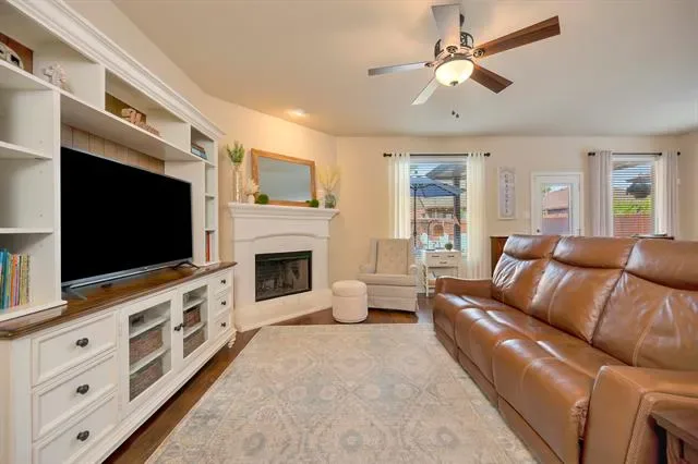This stunning home offers a perfect blend of style and functionality with a flexible floorplan ideal for modern living. The spacious living room features an inviting fireplace and an open layout that seamlessly flows into the kitchen, which boasts granite counters, stainless steel appliances, a gas range, a breakfast bar, an island, and a walk-in pantry. The upstairs game room provides additional space for entertainment. The primary suite is a true retreat with trayed ceilings and a luxurious ensuite bathroom, complete with dual vanities, a separate rainfall shower, a garden tub, and a walk-in closet. Each of the bedrooms includes a walk-in closet, offering ample storage space. Enjoy outdoor living on the covered patio, equipped with a ceiling fan, misters, solar-powered string lights, and extended stone, along with a cozy stone firepit perfect for evening gatherings. Additional features include laminate wood flooring, an office with French doors, and beautifully landscaped grounds with curb appeal enhanced by brick and Austin stone. Conveniently located near parks, shopping, and dining options such as Costco and HEB, this home is ready for its next owner. Don’t miss the opportunity to make it yours! Call today to schedule a showing.