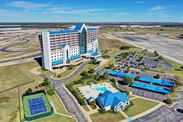 Texas Motor Speedway views • Penthouse-level furnished office • Pickleball, tennis + basketball courts on-site • 3D tour + video available