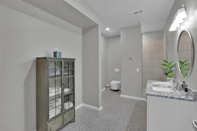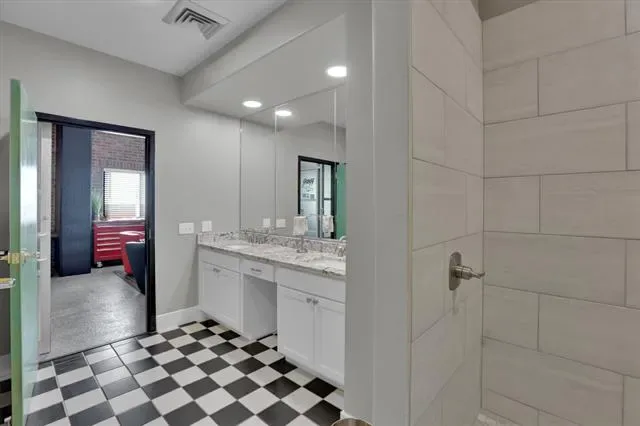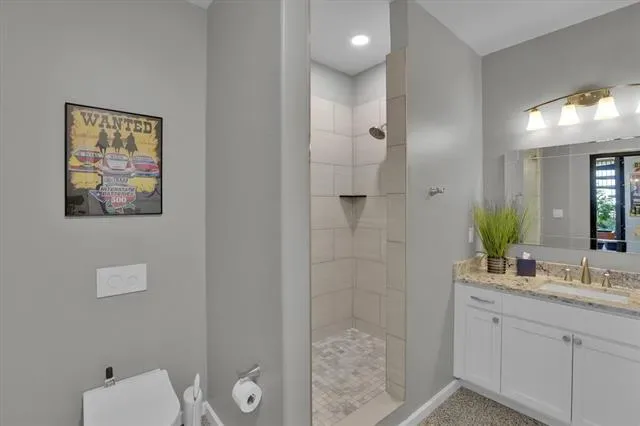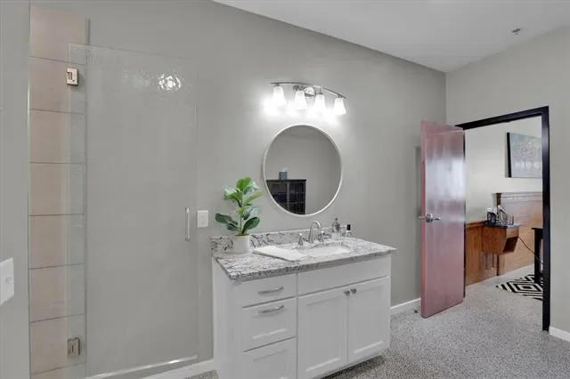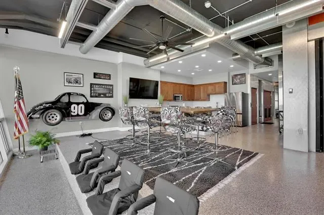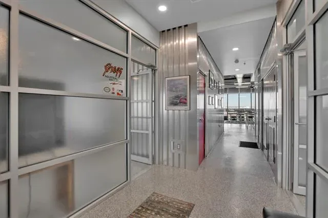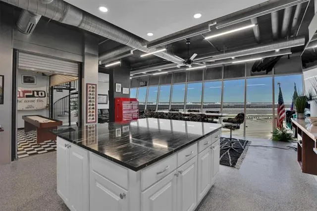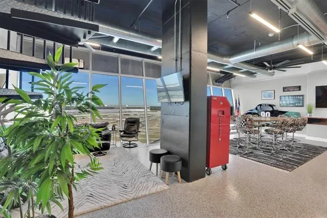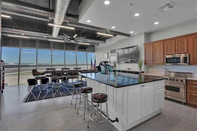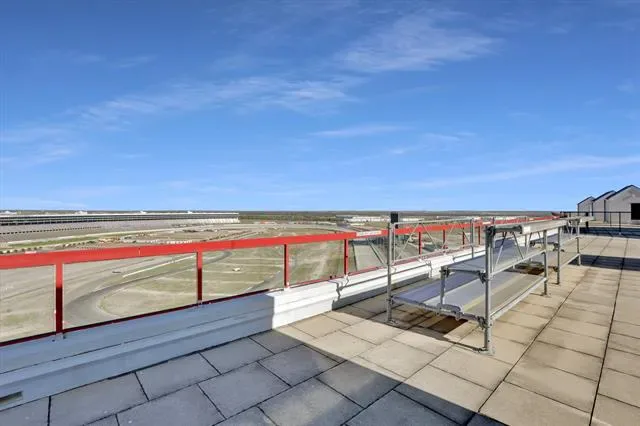 Penthouse-level commercial condo in Lone Star Tower with direct views of Texas Motor Speedway and private rooftop access with dedicated bleacher seating. Single-level open floor plan with 2,050 sq ft of fully furnished, move-in ready office space. Epoxied concrete and tile flooring throughout with expansive windows and abundant natural light. Fully equipped kitchen with granite countertops, custom cabinetry, kitchen island, pantry, and stainless appliances including electric Viking Professional range — ideal for client entertaining and in-office dining. Two private enclosed offices each with ensuite full bath. Third full bath serves main workspace. Private balcony accessible from main floor. Dual-use zoning permits commercial or residential occupancy. All resort-style community amenities available including pool, hot tub, clubhouse, fitness center, tennis courts, basketball courts, and pickleball courts. 2-car covered underground garage parking plus additional parking on-site. Security system, fire sprinkler system, firewalls, and smoke detectors throughout. High-speed internet and cable TV available. Approx. 0.5 mi to Starbucks and Jackdaw Fort Worth restaurant on Championship Pkwy. Easy access to TX-114, I-35W, Alliance Town Center, and Tanger Outlets.