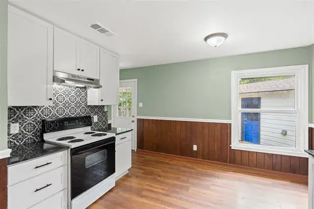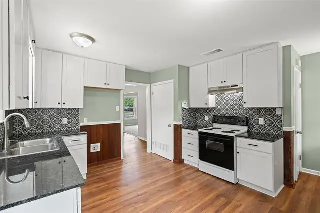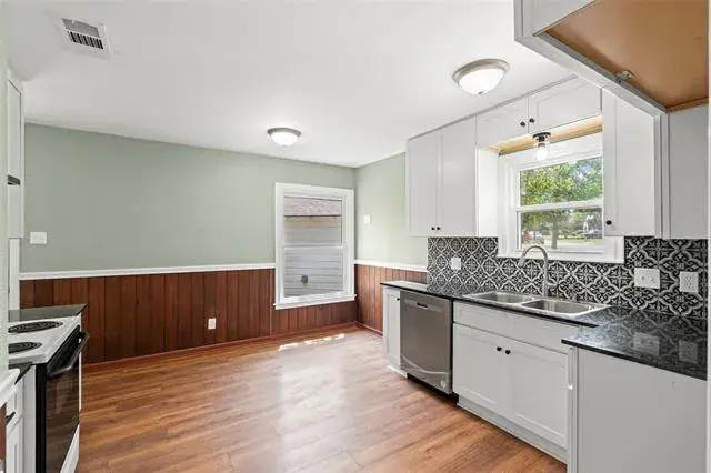 Beautifully Updated 3-Bedroom Home on a Corner Lot! This move-in-ready gem sits on an oversized corner lot and offers 3 bedrooms, 2 full bathrooms & a 1-car garage. Step inside to find fresh interior paint & updated lighting throughout. The home boasts a thoughtful mix of carpet, tile & laminate flooring, with heated tile floors in one bathroom for a touch of luxury. The kitchen is a standout with granite countertops, a stylish tile backsplash, soft-close cabinets and drawers, a walk-in pantry & a new dishwasher. It features an electric range but is plumbed for gas if you prefer to make the switch. One of the bathrooms was taken down to the studs and fully renovated, including updated plumbing and modern vanities in both bathrooms. An extra bathroom and walk-in closet were recently added to enhance comfort and functionality. You’ll also find wainscoting accents, ceiling fans in the living room and all bedrooms & updated vinyl windows for improved energy efficiency. The backyard is perfect for entertaining & the home includes a security alarm system for peace of mind. Conveniently located with easy access to major highways, commuting to Downtown Fort Worth, Dallas & the Mid-Cities is a breeze.
