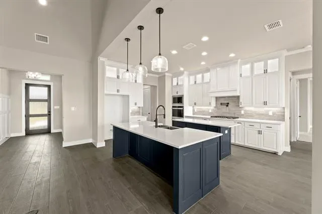 MLS# 20849252 – Built by Brookson Builders – Ready Now! ~ This 4-bedroom, 3.5-bathroom single-family residence, boasting 2809 sqft of spacious living, is nestled in Prairie Hills Addition, under Aledo ISD, this home is perfect for families. The interior shines with decorative lighting, a kitchen with an island, open floor plan, pantry, and a vaulted ceiling. The exterior features a covered patio, 4-car garage, and ample lighting. This farmhouse elevation on 2 acres is a perfect escape from the hustle and bustle of the city!