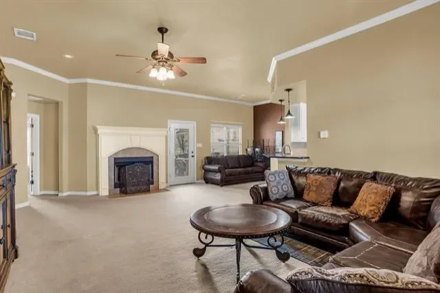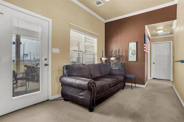 Situated on 1.5 acres in highly sought-after Northwest ISD, this charming home offers space, comfort, and flexibility! The open-concept layout features a large, beautifully designed kitchen with ample cabinetry and workspace, perfect for everyday living and entertaining. The home includes 3 bedrooms and 2 bathrooms, plus a versatile flex space ideal for a study, playroom, craft room, or additional storage. The primary suite boasts a stunning walk-in shower for a spa-like experience. Enjoy outdoor living year-round with a covered front porch and back patio, providing the perfect setting to relax and stay cool during those warm Texas days.