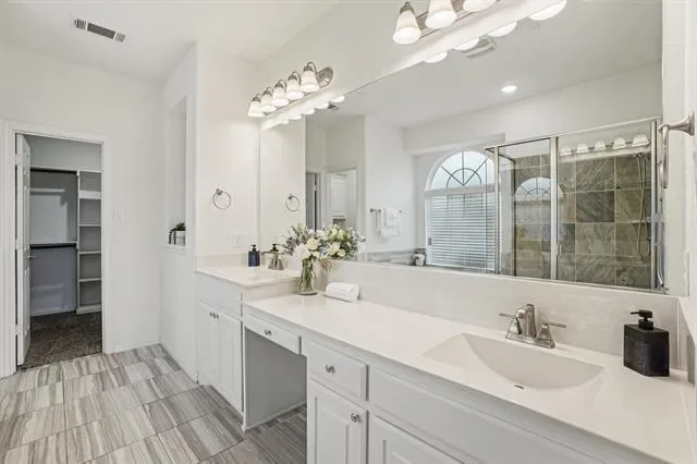 Situated on a desirable corner lot, the outdoor space is equally impressive with an extended patio and outdoor plumbing rough-in ready for a future outdoor kitchen. Thoughtfully designed flower beds and planters enhance the home’s curb appeal.
