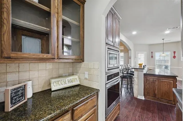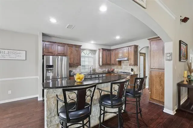 This beautiful 5 bedroom, 3.5 bathroom home in the heart of Presidio West offers the perfect blend of space, style, and functionality. From the grand entry with vaulted ceilings and curved staircase to the open-concept living areas, every detail is designed for both entertaining and everyday comfort. The gourmet kitchen is a chef’s dream with stainless steel appliances, gas cooktop, wall oven, butler’s pantry, and even a dedicated wine room. Multiple living and dining spaces, a home office, media room, and game room ensure room for everyone to work, play, and relax. Retreat to the spacious primary suite featuring dual vanities, soaking tub, separate shower, and a large walk-in closet. Generously sized secondary bedrooms provide comfort and flexibility for family and guests. Enjoy movie nights in the media room, host gatherings in the game room, or relax in the landscaped backyard. Ideally located near Alliance Town Center, Presidio shopping, dining, entertainment, and just minutes to Downtown Fort Worth and DFW airports.