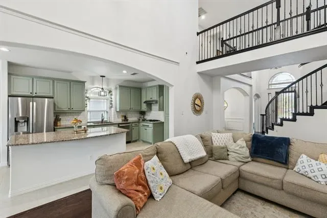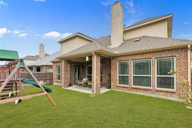 This beautifully designed two-story home, offers the perfect blend of modern construction, thoughtful updates, and functional living spaces ideal for today’s lifestyle. Newer-age construction means improved energy efficiency, contemporary floor plans, updated systems, and the peace of mind that comes with more current building standards. The spacious primary suite is located on the first floor and features generous proportions, dual sinks, an ensuite bath, and a walk-in closet—creating a true private retreat. Also on the main level is a dedicated office, perfect for working from home, along with an open and inviting living area showcasing built-in cabinetry, a gas fireplace, and abundant natural light. The kitchen is the heart of the home, complete with granite countertops, a large island, eat-in dining space, pantry, built-in cabinetry, gas cooktop, and water line to the refrigerator—ideal for both everyday living and entertaining. Adjacent dining and breakfast areas provide flexibility for gatherings large or small. Upstairs, you’ll find three spacious secondary bedrooms, including one with an ensuite bath, along with an oversized game room and a dedicated media room featuring built-in cabinetry perfect for movie nights or game days. Multiple full baths ensure comfort and convenience for family and guests alike. Additional highlights include engineered wood, ceramic tile, and carpet flooring, vaulted ceilings, sound system wiring, a wet bar, tankless water heater, and a full security system. The brick exterior, composition roof, and covered patio add timeless appeal, while the landscaped interior lot with sprinkler system offers easy outdoor enjoyment. Located in a vibrant community with access to a clubhouse, pool, parks, and jogging and bike paths, this home combines comfort, style, and modern convenience—all within a well-maintained neighborhood setting.