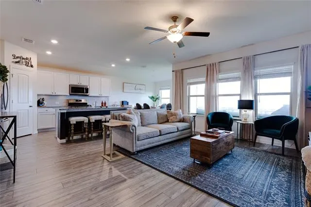 Discover comfort and functionality in this 4 bedroom, 2.5 bath home in Primrose Crossing Fort Worth, designed to fit a variety of lifestyles. All bedrooms are thoughtfully placed on the main level, offering convenience and privacy with a split layout that separates the primary suite from secondary rooms. The upstairs loft with a half bath adds valuable flexibility, ideal for a second living area, workspace, or guest retreat. Inside, the home offers comfortable living spaces that flow naturally for both daily living and entertaining. The kitchen is built for both daily living and entertaining, featuring a gas range, generous counter space for meal preparation, and a counter-height island that anchors the space. The layout supports ease and livability, with intentional design that maximizes both space yet feels warm and inviting. Residents can take advantage of nearby jogging trails, a dedicated dog park, and a resort-style family pool, all within close reach. This home offers a compelling blend of warmth, functionality, and lifestyle in a desirable Fort Worth community where it truly feels like home. Showings will begin at noon on Tuesday April 21st.
