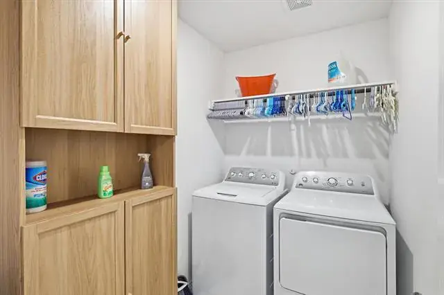 With its pristine condition, flexible layout, and access to top-tier amenities, this home delivers the perfect blend of comfort, convenience, and community living. Plus, the extra cabinet in laundry room stays and well as the two white hutches in the kitchen, washer and dryer are negotiable.