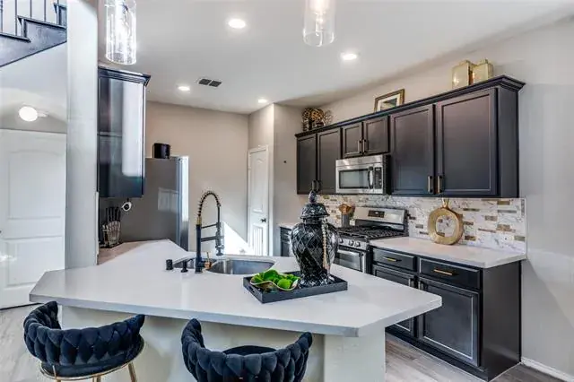 $2,000 Buyer closing cost credit with full price offer! Welcome Home to this beautiful two-story home built in 2018. The entryway showcases a stunning crystal light feature, setting the tone for this elegant home. The family room features laminate flooring and a striking black-and-gold custom fireplace. The kitchen offers a breakfast bar, stainless steel appliances, and a dedicated dining area. The downstairs primary suite includes a modern fireplace, while the primary bathroom boasts a garden tub, separate shower, double sinks, and a walk-in closet. Upstairs, enjoy an open loft, two additional bedrooms, and a full bathroom. Laundry room is conveniently located off the garage with a rear entrance. A quaint backyard completes this inviting home. HOA includes, Pool, playground, dog park, picnic pavilion.